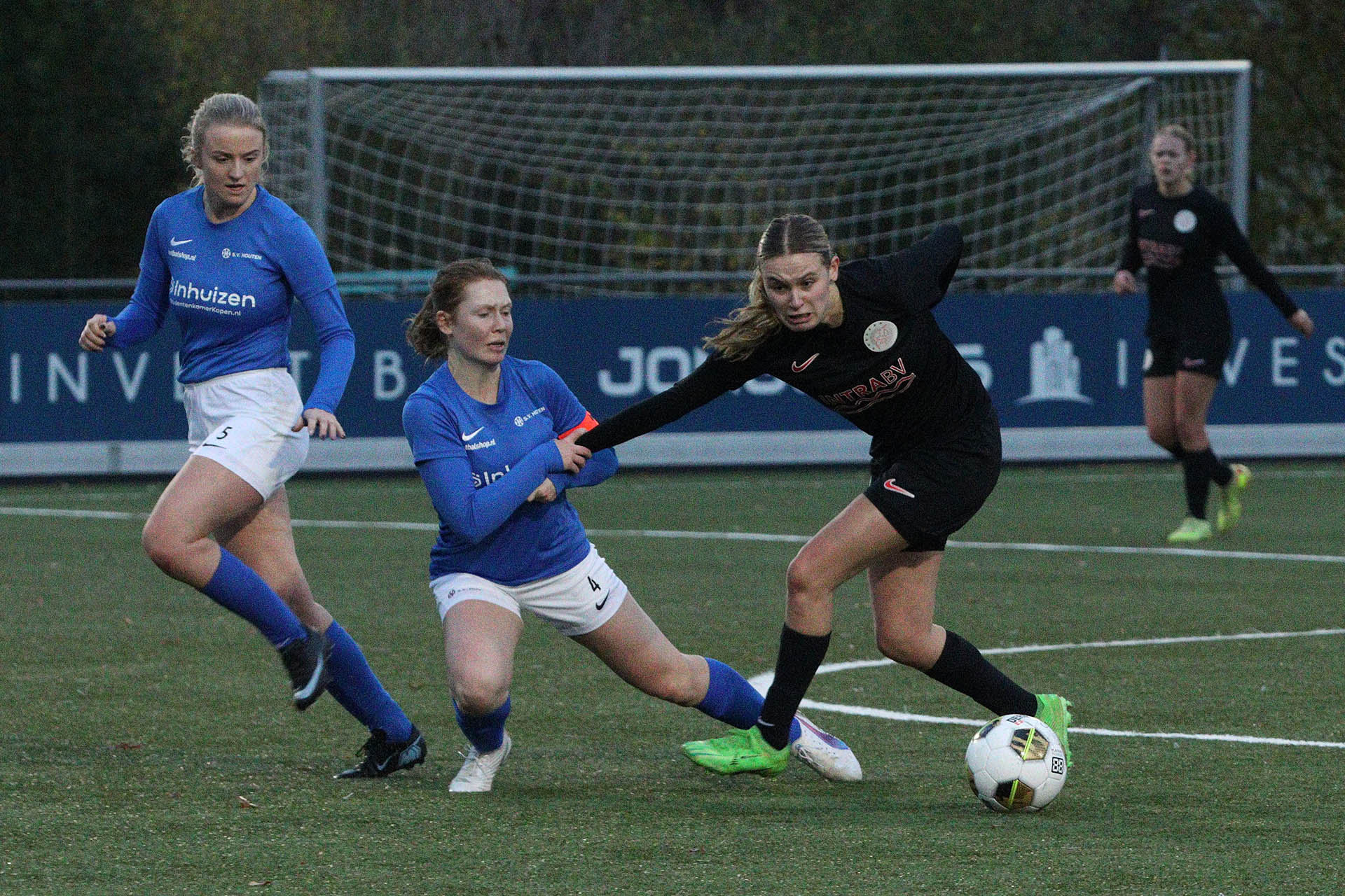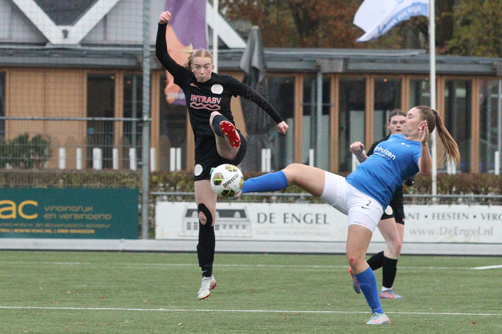 IJsselmeervogels bleef proberen voetballend het verschil te maken, maar middelvelders Sam Koelewijn en Lieke Guliker kregen weer een paar lompe overtredingen op enkels en achillespezen te verwerken. En waar kaarten voor de thuisclub opnieuw uitbleven, kwamen ze voor de onzen heel makkelijk uit het borstzakje. Cherelle Blokhuis kreeg er een voor een botsing met de keeper. Sam Koelewijn kreeg er een voor een kleine overtreding en in de extra tijd was aanvoerder Tessa Koelewijn aan de beurt toen ze het opnam voor haar zus.