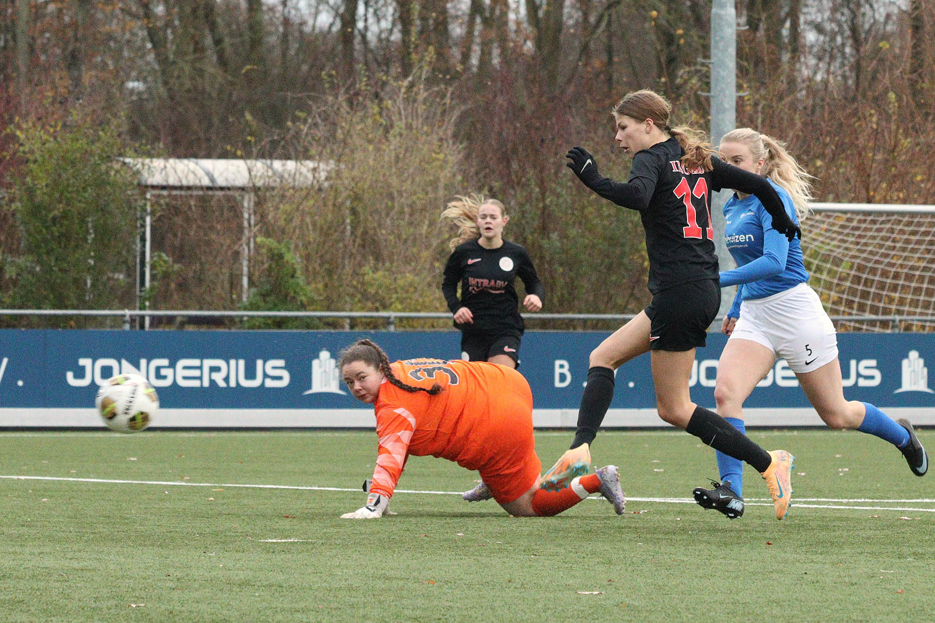 Na de 0-2 gooide Houten de schroom van zich af en kreeg het een paar kansjes, zonder dat het doelvrouw Jonne Odding in verlegenheid bracht. Aan de andere kant had de beslissing kunnen en misschien wel moeten vallen. Mia Beukers lanceerde op rechts Cherelle Blokhuis en haar voorzet kon door Manù Schuit worden afgerond, maar het schot van Manù ging hard voorlangs.